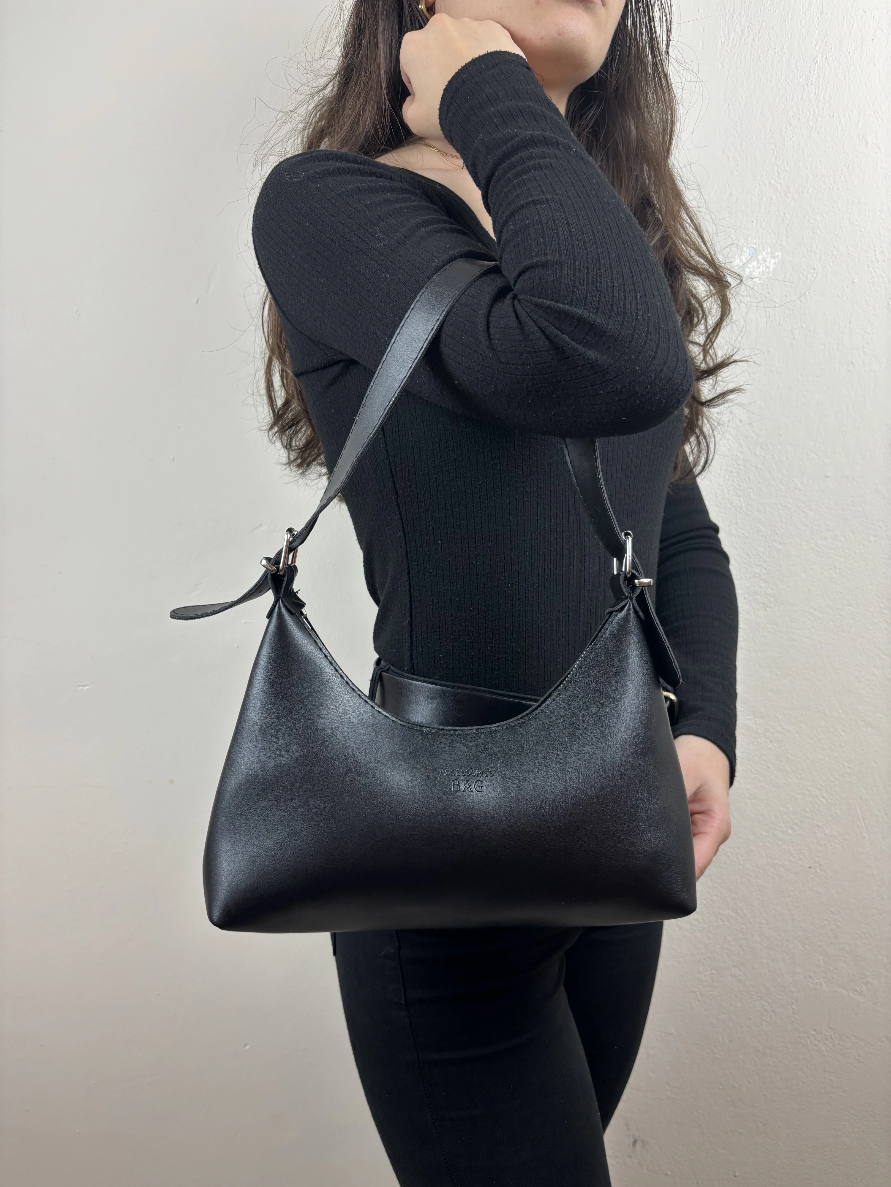 Madamia’nın zarif çizgisini yansıtan bu Siyah shoulder bag, minimalist tasarımı ve zamansız rengiyle dikkat çeker. Kaliteli suni deriden üretilmiş pürüzsüz yüzeyi, yumuşak formu ve altın detaylı askı halkalarıyla hem klasik hem modern stillerle uyum sağlar. 27 x 14 x 7 cm ölçülerindeki kompakt boyutu sayesinde günlük kullanım için idealdir. Cüzdan, telefon ve temel eşyalarınızı kolaylıkla taşırken zarif duruşundan ödün vermez. Fermuarlı kapama sistemi ve astarlı iç bölmesiyle güvenli ve düzenli bir kullanım sunar. Öne Çıkan Özellikler: Malzeme: Kaliteli suni deri Renk: Siyah Ölçüler: 27 x 14 x 7 cm Kapama: Fermuarlı İç özellikler: Astarlı geniş iç hacim + küçük yan cep Askı: Ayarlanabilir omuz askısı Stil: Günlük / Şık / Minimal Kombin Önerisi: Bej, siyah veya krem tonlarındaki parçalarla mükemmel bir kontrast oluşturur. Gün içinde sade bir jean-gömlek kombinine ya da akşam elbiselerine zarif bir dokunuş katar.