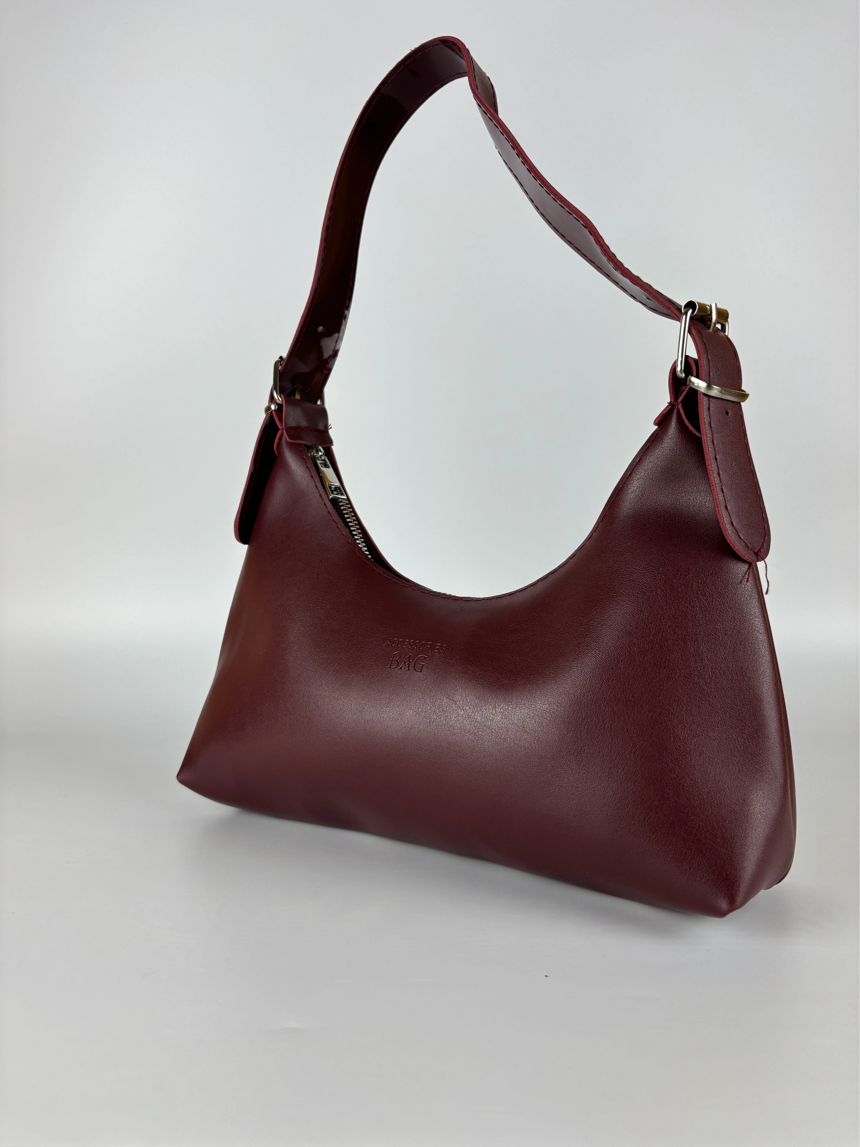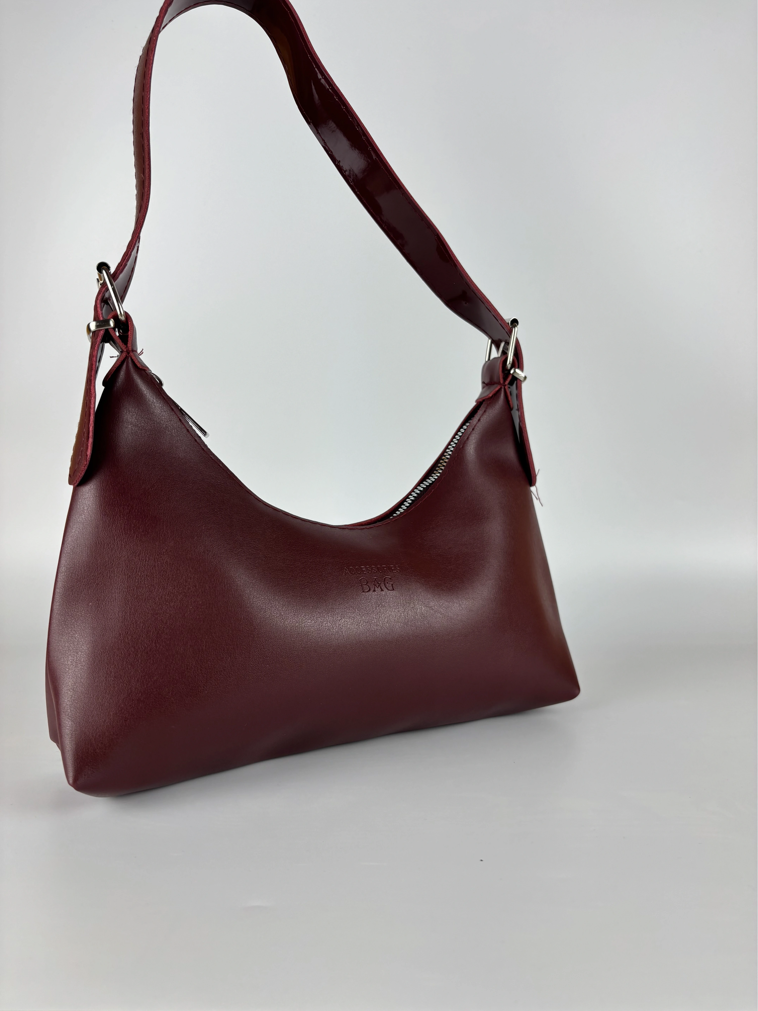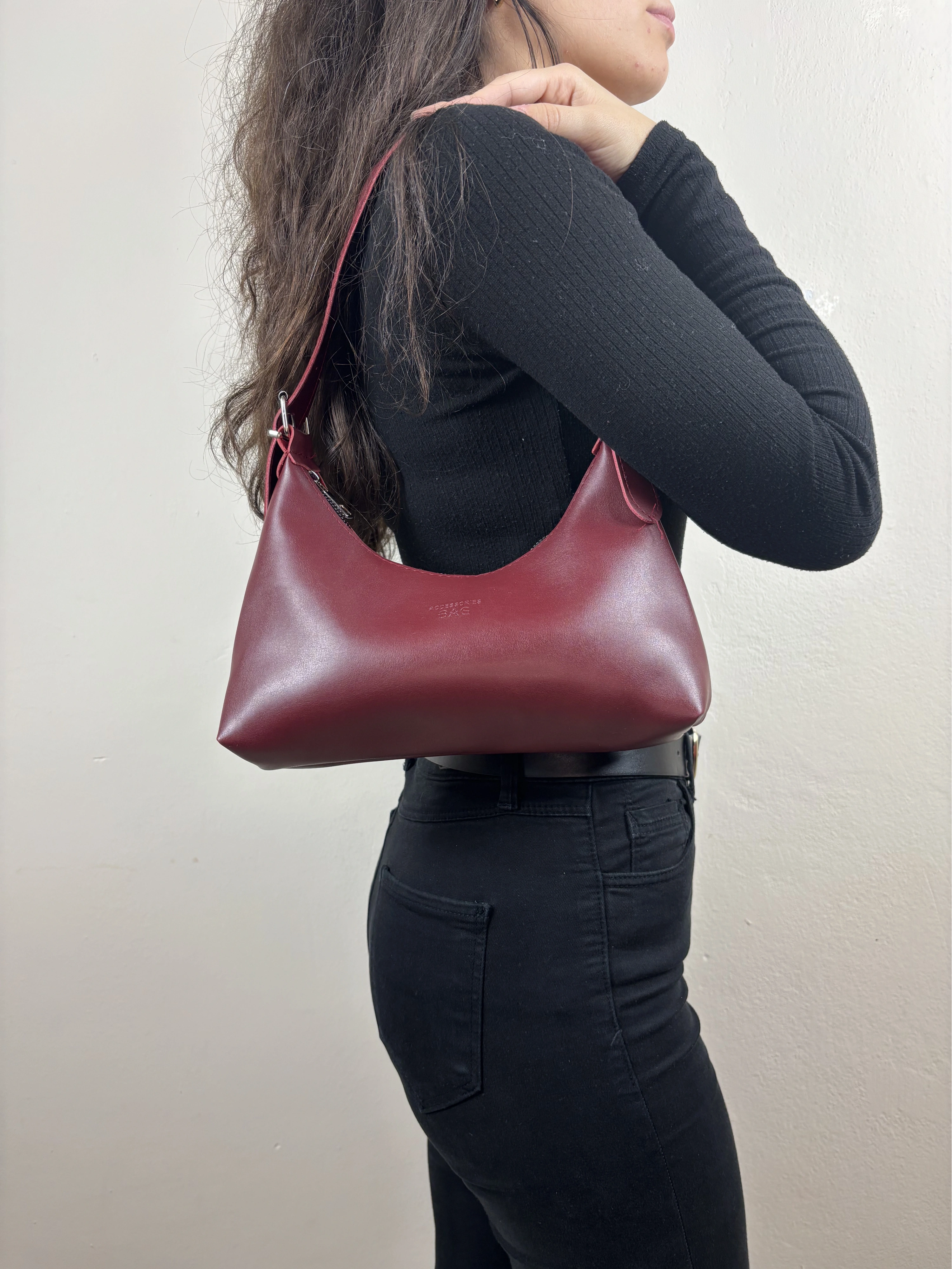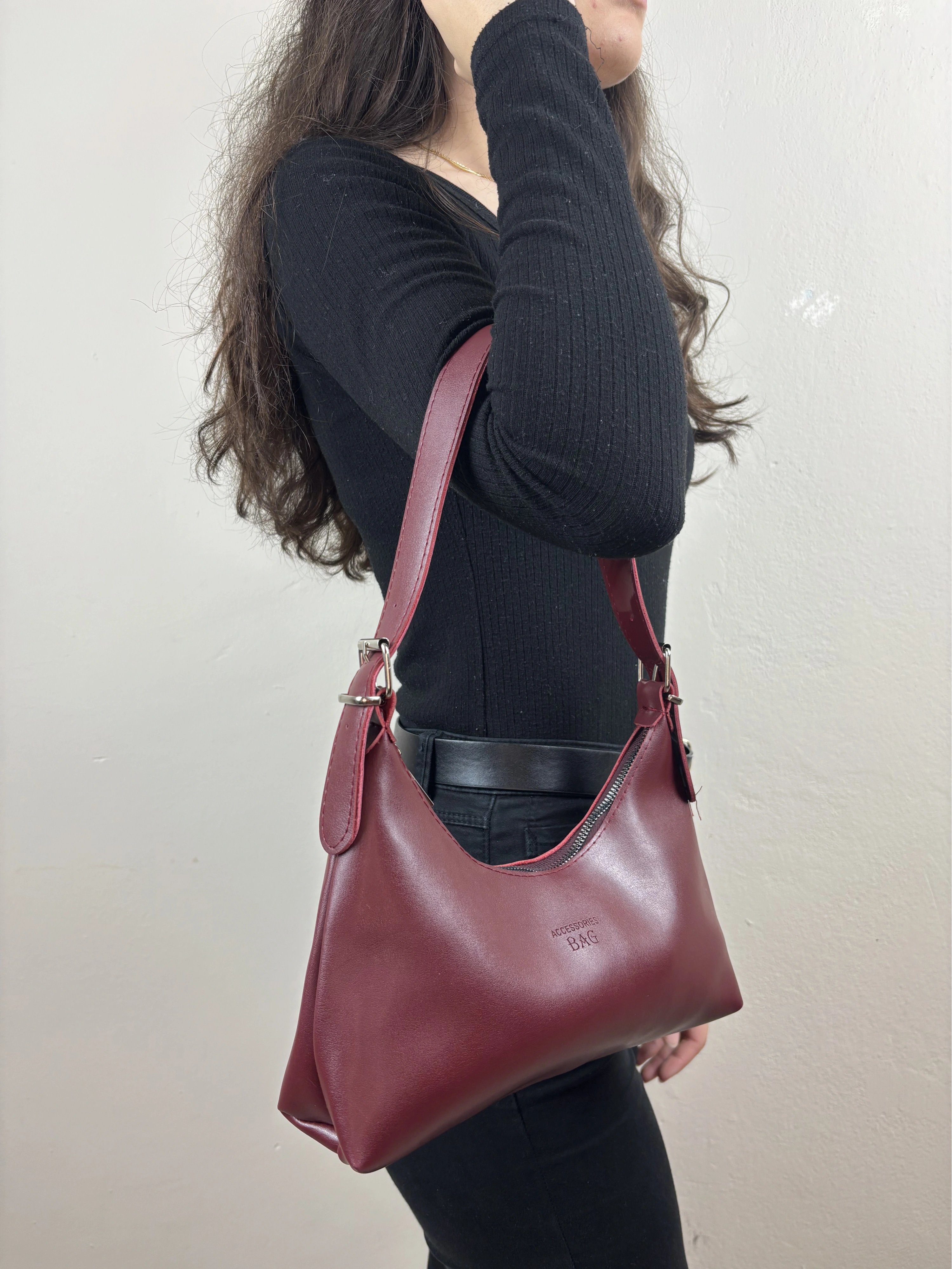 Madamia’nın zarif çizgisini yansıtan bu bordo shoulder bag, minimalist tasarımı ve zamansız rengiyle dikkat çeker. Kaliteli suni deriden üretilmiş pürüzsüz yüzeyi, yumuşak formu ve altın detaylı askı halkalarıyla hem klasik hem modern stillerle uyum sağlar. 27 x 14 x 7 cm ölçülerindeki kompakt boyutu sayesinde günlük kullanım için idealdir. Cüzdan, telefon ve temel eşyalarınızı kolaylıkla taşırken zarif duruşundan ödün vermez. Fermuarlı kapama sistemi ve astarlı iç bölmesiyle güvenli ve düzenli bir kullanım sunar. Öne Çıkan Özellikler: Malzeme: Kaliteli suni deri Renk: Bordo Ölçüler: 27 x 14 x 7 cm Kapama: Fermuarlı İç özellikler: Astarlı geniş iç hacim + küçük yan cep Askı: Ayarlanabilir omuz askısı Stil: Günlük / Şık / Minimal Kombin Önerisi: Bej, siyah veya krem tonlarındaki parçalarla mükemmel bir kontrast oluşturur. Gün içinde sade bir jean-gömlek kombinine ya da akşam elbiselerine zarif bir dokunuş katar.