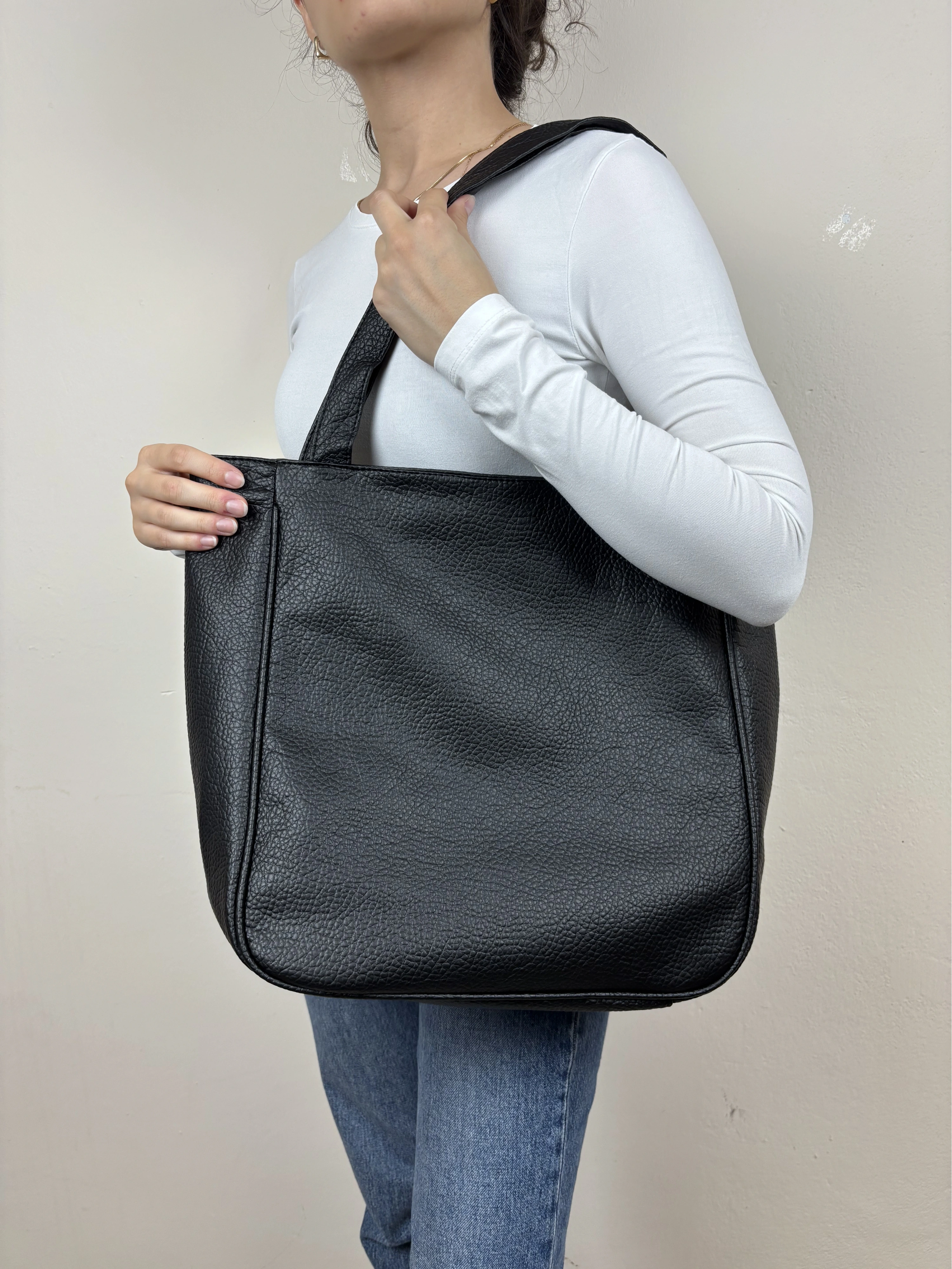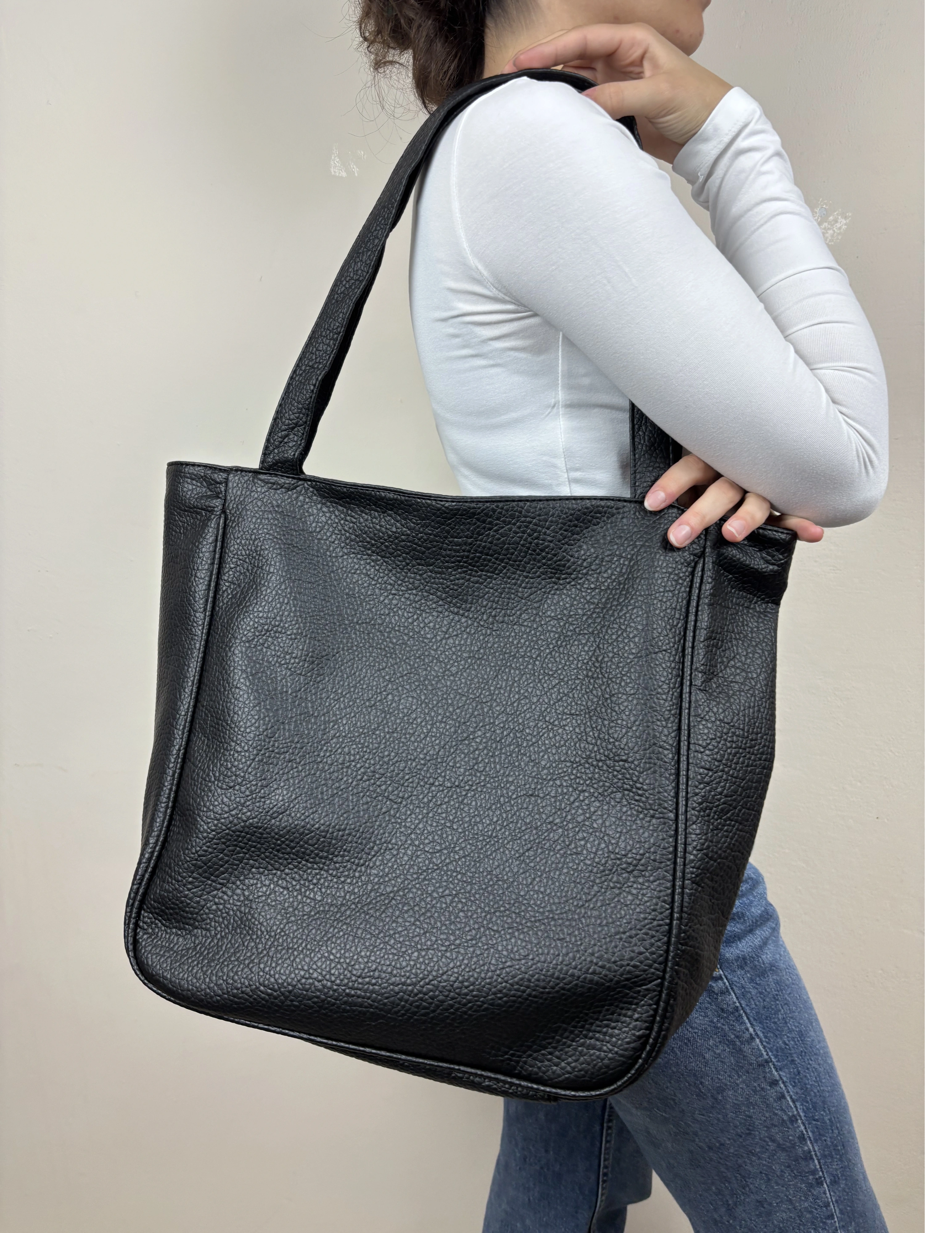 Uzun Açıklama (Ürün Sayfası): Madamia’nın sade ve güçlü tarzını yansıtan Siyah Geniş Omuz Çantası, fonksiyonel yapısı ve zamansız görünümüyle hem şık hem kullanışlı bir modeldir. 42 x 38 x 12 cm ölçülerindeki geniş formu sayesinde laptop, defter, su şişesi, cüzdan ve günlük ihtiyaçlarını kolaylıkla taşıyabilirsin. Kaliteli suni deriden üretilen dokulu yüzeyi, uzun ömürlü kullanım sunarken pürüzsüz yapısı modern bir duruş kazandırır. Arka yüzündeki fermuarlı cep, sık kullandığın küçük eşyalar için pratik bir alan sağlar. Uzun omuz saplarıyla rahat taşınabilen model, minimalist tasarımıyla her kombine uyum sağlar. Öne Çıkan Özellikler: Malzeme: Dokulu kaliteli suni deri Renk: Siyah Ölçüler: 42 x 38 x 12 cm Kapama: Üst fermuarlı Ek detay: Arka fermuarlı dış cep İç özellikler: Astarlı geniş iç hacim + iç fermuarlı cep Askı: Uzun omuz sapı Stil: Günlük / Ofis / Klasik Kombin Önerisi: Klasik trençkotlar, deri ceketler veya oversize takımlarla mükemmel uyum sağlar. Hem ofis günlerinde hem hafta sonu şehir şıklığında ideal bir tamamlayıcıdır.