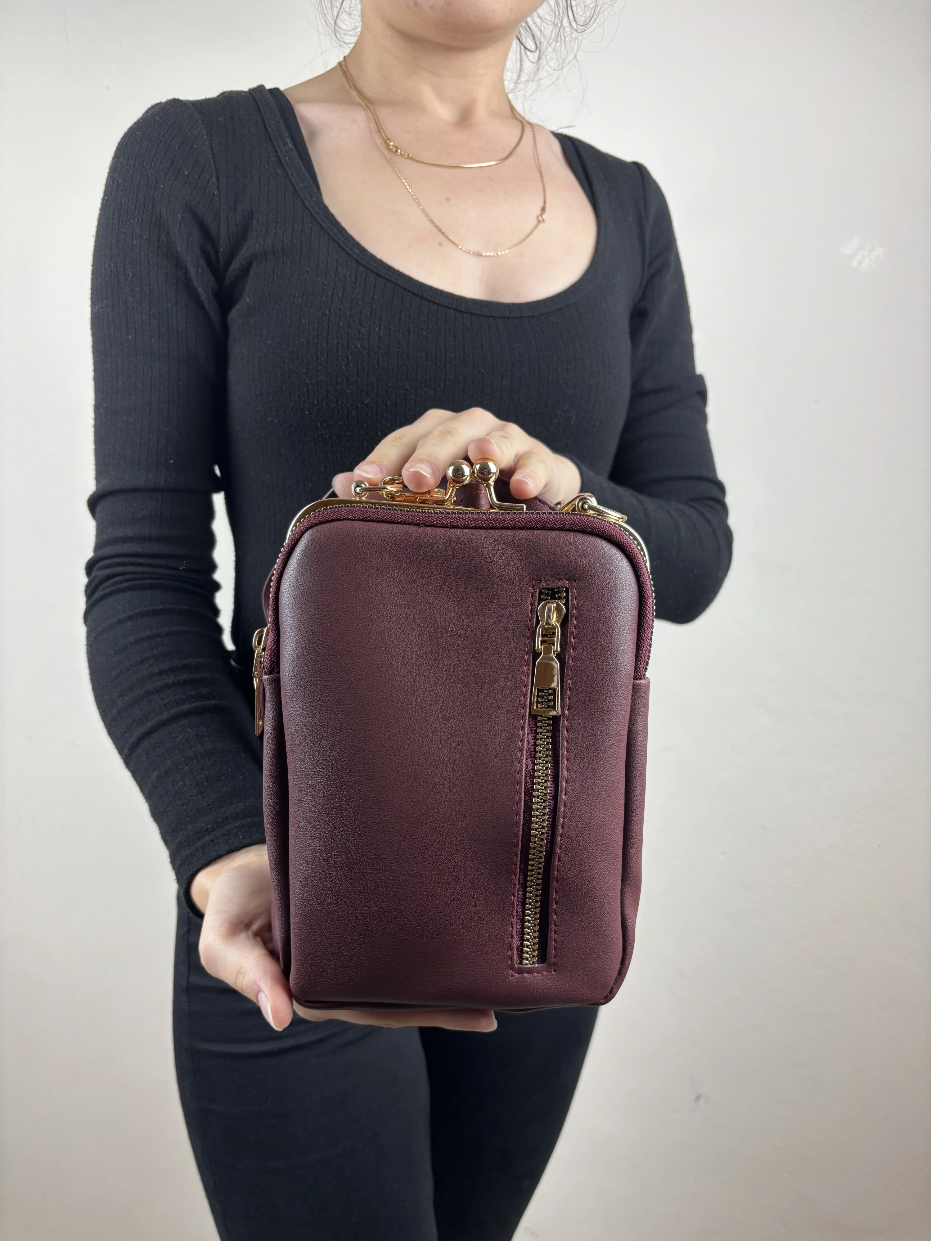 Madamia’nın sade ama sofistike çizgisini yansıtan Bordo Çıtçıtlı Mini El Çantası, minimal formuyla zarif bir şıklık sunar. 14 x 20 x 6 cm ölçülerindeki kompakt yapısı, telefon, kartlık ve küçük eşyaları taşıman için idealdir. Yumuşak dokulu suni deri yüzeyi ve altın detaylı metal çerçevesiyle retro bir hava taşır. Üst kısmındaki çıtçıtlı (kiss lock) kapama, hem estetik hem güvenli bir kullanım sağlar. İnce zincir askısıyla elde, omuzda veya çapraz takılarak kullanılabilir. Öne Çıkan Özellikler: Malzeme: Yumuşak dokulu kaliteli suni deri Renk: Bordo Ölçüler: 14 x 20 x 6 cm Kapama: Çıtçıtlı metal çerçeve Askı: İnce metal zincir Aksesuar: Altın detaylı logo Stil: Şık / Günlük / Vintage Kombin Önerisi: Bej, krem veya kahverengi tonlarıyla mükemmel uyum sağlar. Akşam davetlerinde veya şehir gezilerinde minimalist bir zarafet sunar.