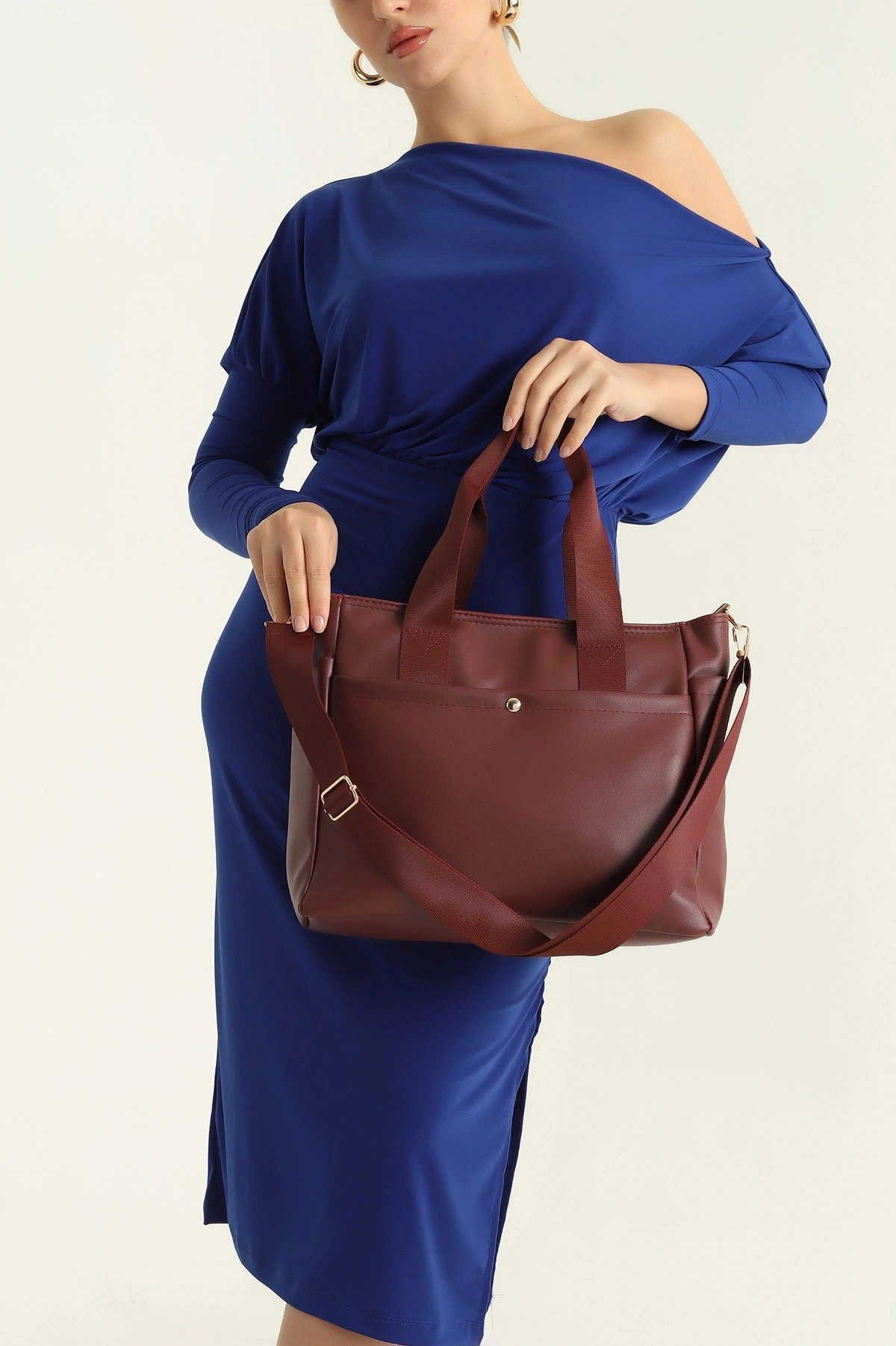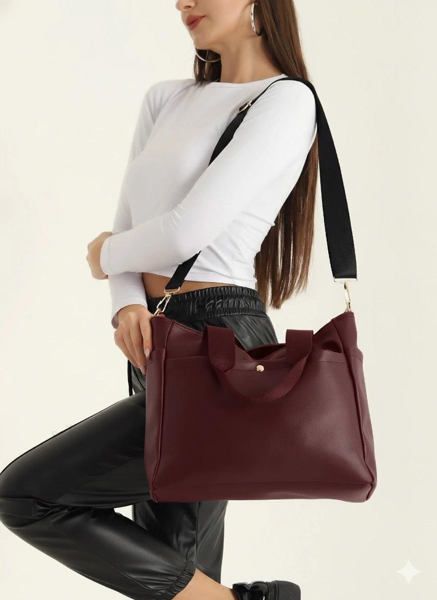 Madamia’nın sade ve işlevsel tasarım çizgisini yansıtan Bordo Geniş Omuz Çantası, hem günlük kullanım hem de iş hayatı için ideal bir modeldir. 40 x 25 x 12 cm ölçülerindeki geniş yapısı sayesinde defter, tablet, cüzdan ve kişisel eşyalarınızı rahatça taşıyabilirsiniz. Yumuşak dokulu kaliteli suni deriden üretilen çanta, bordonun sıcak tonuyla her mevsim kombinlerinize zarif bir dokunuş katar. Ön yüzündeki çıtçıtlı dış cep ve iç kısmındaki fermuarlı bölme sayesinde eşyalarınızı düzenli ve kolay erişilebilir şekilde saklayabilirsiniz. Dayanıklı kumaş sapları uzun süreli kullanımlarda konfor sağlarken, fermuarlı ana bölmesi güvenli bir kullanım sunar. Öne Çıkan Özellikler: Malzeme: Kaliteli suni deri Renk: Bordo Ölçüler: 40 x 25 x 12 cm Kapama: Üst fermuarlı Ek detay: Ön yüzde çıtçıtlı dış cep İç özellikler: Astarlı geniş iç hacim + küçük fermuarlı cep Askı: Dayanıklı kumaş omuz sapı Stil: Günlük / Ofis / Casual Kombin Önerisi: Bej, kahve veya krem tonlarında triko takımlar, gömlekler ya da blazer ceketlerle mükemmel uyum sağlar. Günlük şıklığını sade ve modern bir dokunuşla tamamlar.
