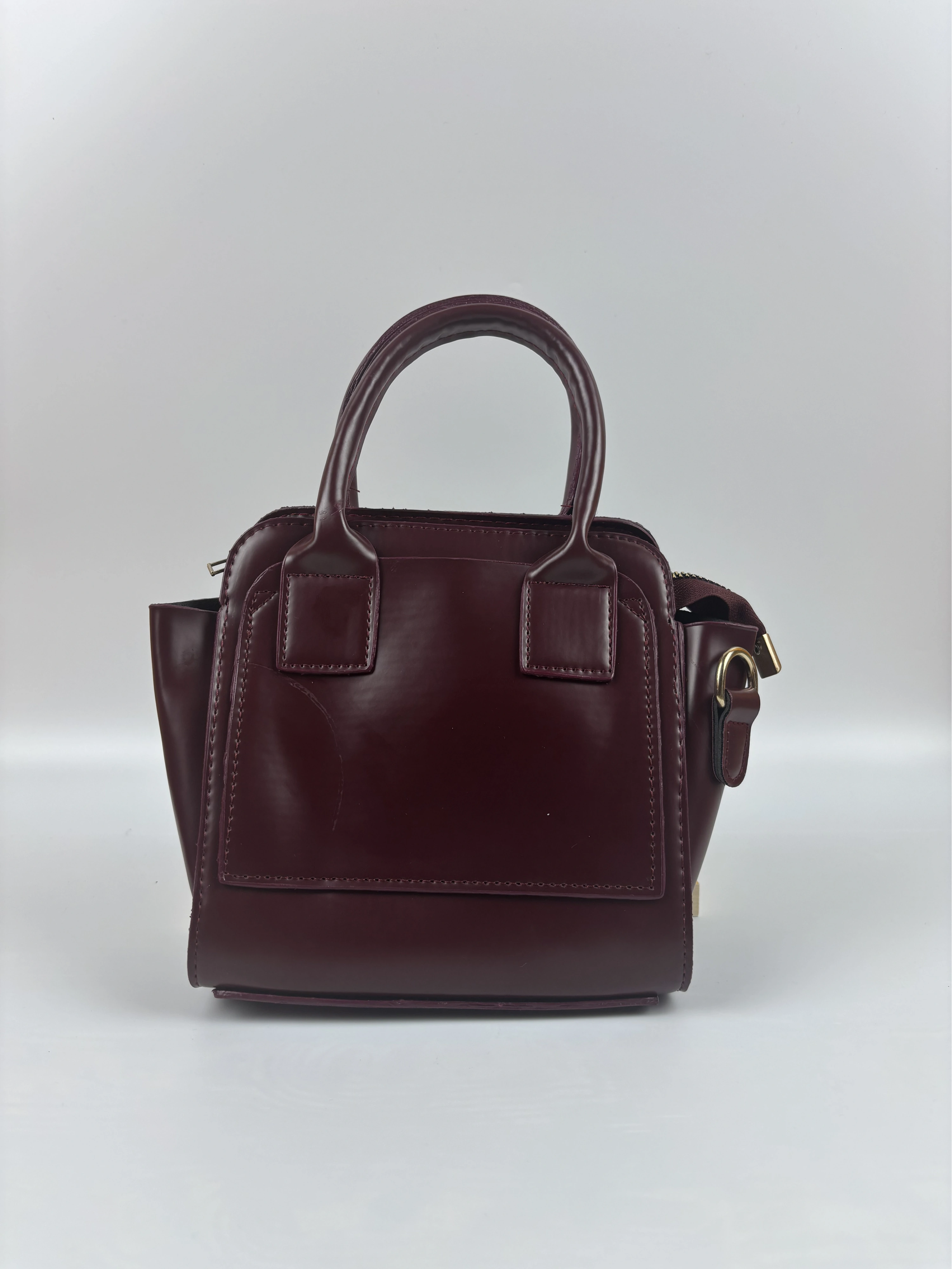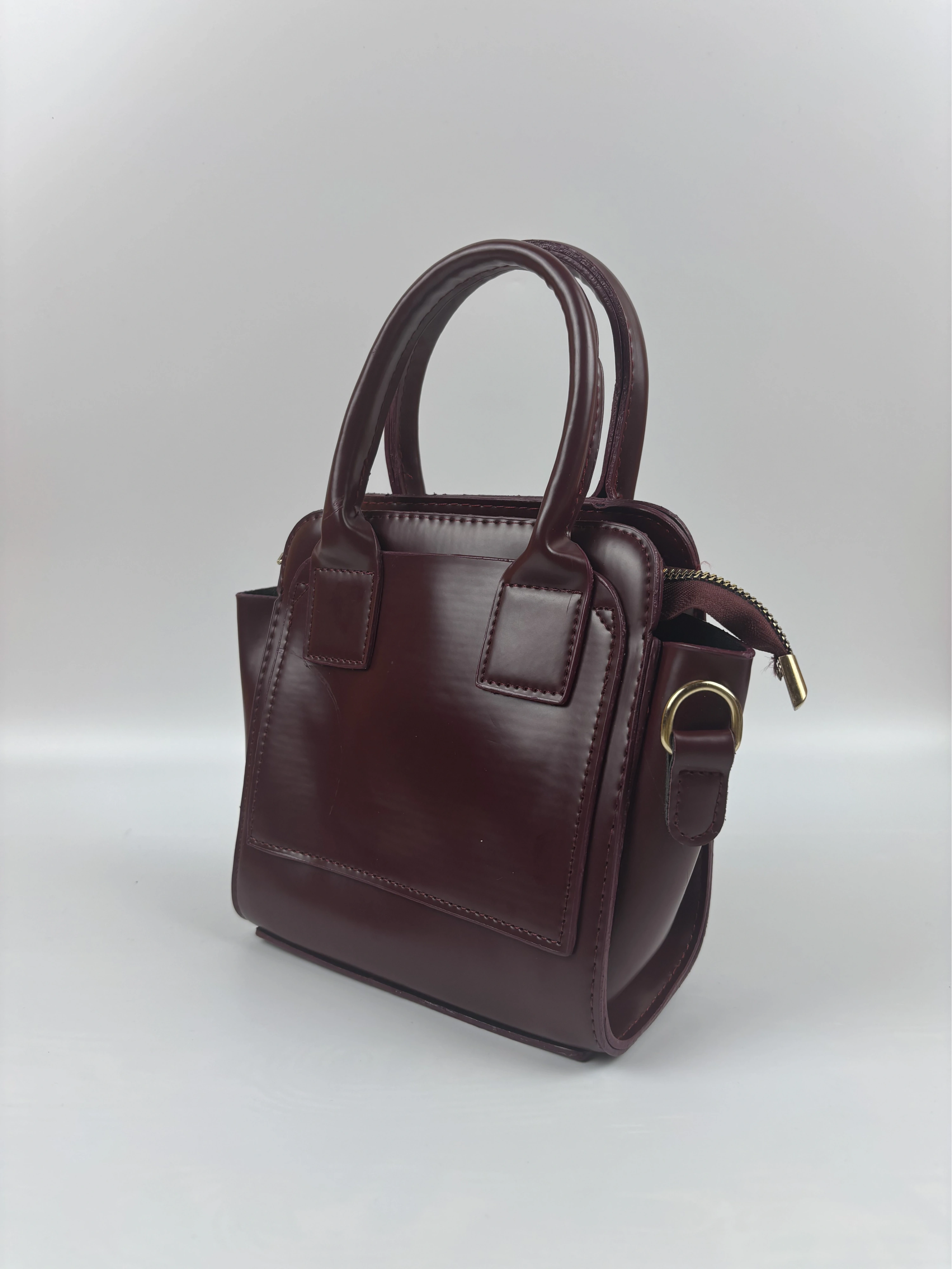 Madamia’nın modern ve zarif çizgisini yansıtan Bordo Kare Form Mini El Çantası, kompakt formu ve parlak dokusuyla dikkat çeker. 20 x 12 x 8 cm ölçülerindeki yapısı, telefon, kartlık ve temel eşyaları taşımak için idealdir. Kaliteli suni deriden üretilen pürüzsüz yüzeyi, altın detaylı fermuar ve halkalarla birleşerek sofistike bir görünüm sunar. Üst saplarıyla elde taşınabilir, çıkarılabilir askısıyla omuzda da rahatlıkla kullanılabilir. Hem günlük şıklıkta hem özel davetlerde zarif bir tamamlayıcı olarak öne çıkar. Öne Çıkan Özellikler: Malzeme: Parlak dokulu kaliteli suni deri Renk: Bordo Ölçüler: 20 x 12 x 8 cm Kapama: Üst fermuar Askı: Elde taşıma sapı + çıkarılabilir omuz askısı Stil: Günlük / Şık / Minimal Kombin Önerisi: Bej, siyah veya altın tonlarındaki kombinlerle mükemmel uyum sağlar. Akşam davetlerinde topuklu ayakkabılarla, gündüz ise sade triko takımlarla tamamlanabilir.