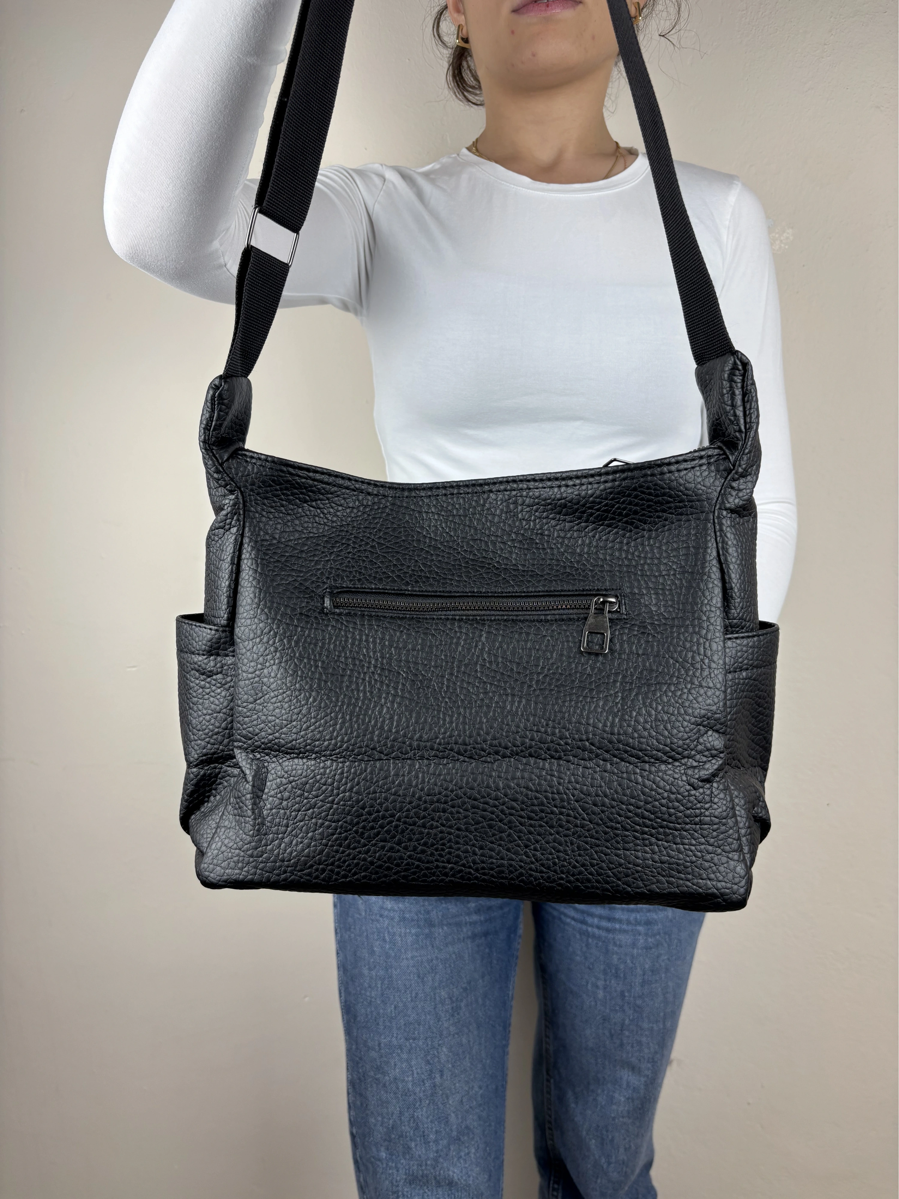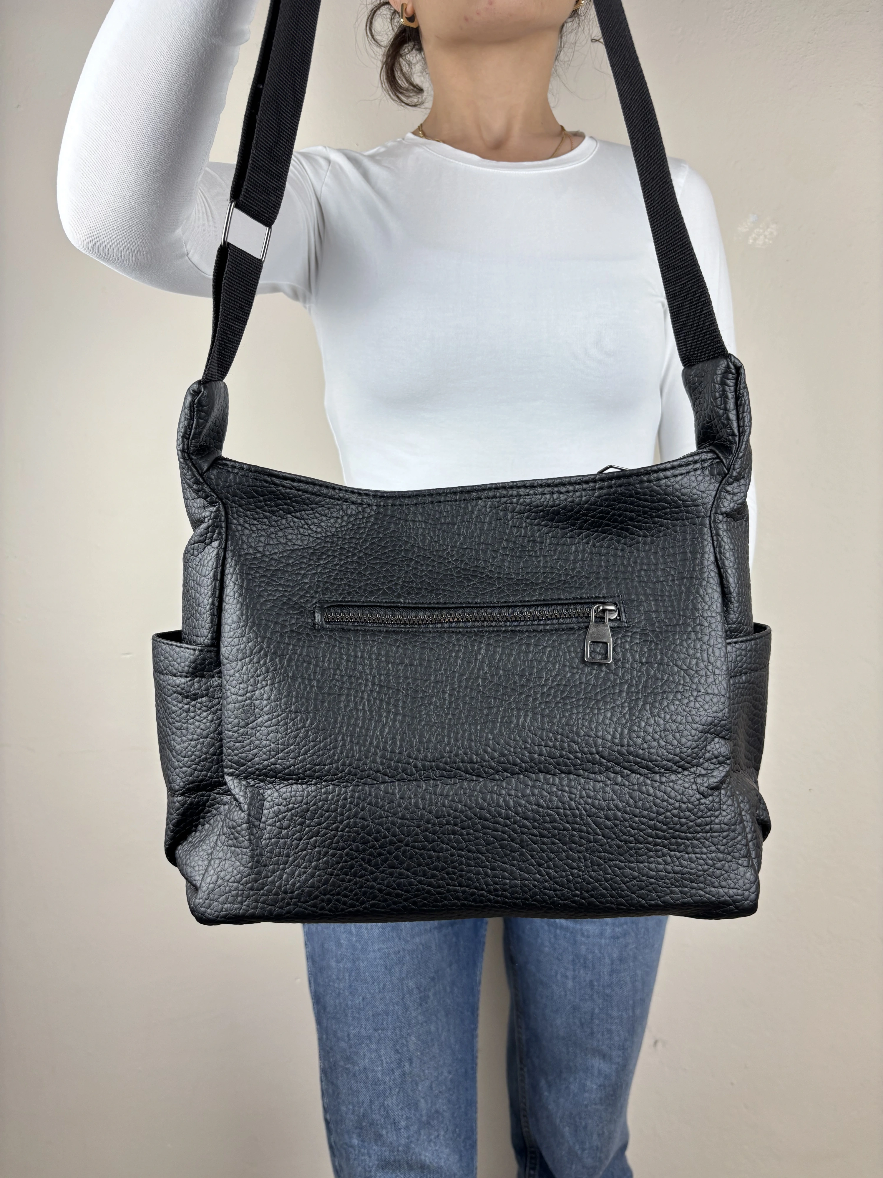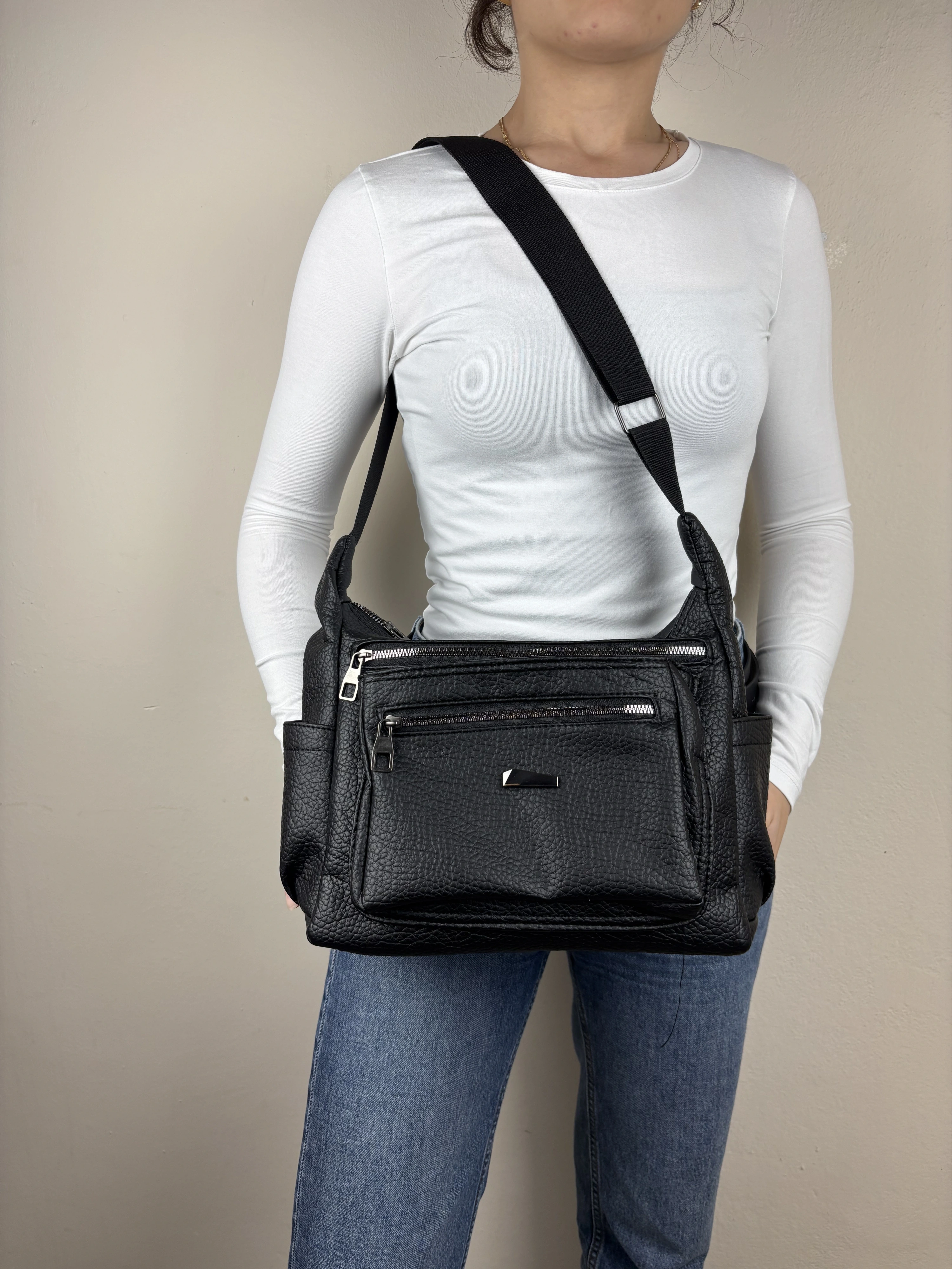 Madamia’nın sade ama işlevsel tasarımlarından biri olan Siyah Çok Gözlü Günlük Çanta, pratikliği ve zarif tonuyla günlük yaşamın kurtarıcısı. 35 x 20 x 10 cm ölçülerindeki ideal boyutuyla hem konforlu hem de düzenli bir kullanım sunar. Yumuşak dokulu kaliteli suni deri malzemeden üretilmiştir. Ön, arka ve yan kısımlarında yer alan çoklu fermuarlı cepler sayesinde eşyalarını kolayca organize edebilir, gün boyu elinin altında tutabilirsin. Ayarlanabilir omuz askısı sayesinde ister omuzda ister çapraz şekilde rahatlıkla taşınabilir. Nötr bej rengi, her kombine kolayca uyum sağlar. Öne Çıkan Özellikler: Malzeme: Kaliteli suni deri Renk: Siyah Ölçüler: 35 x 20 x 10 cm Kapama: Üst fermuar Ek detaylar: Ön, arka ve yan fermuarlı cepler İç özellikler: Astarlı iç hacim + iç cep Askı: Ayarlanabilir omuz askısı Stil: Günlük / Casual / Şehirli Kombin Önerisi: Kot pantolonlar, bej veya kahve tonlarındaki triko kazaklar ve spor ayakkabılarla mükemmel uyum sağlar. Şehir hayatının hızlı temposunda hem pratik hem şık bir tercih olur.