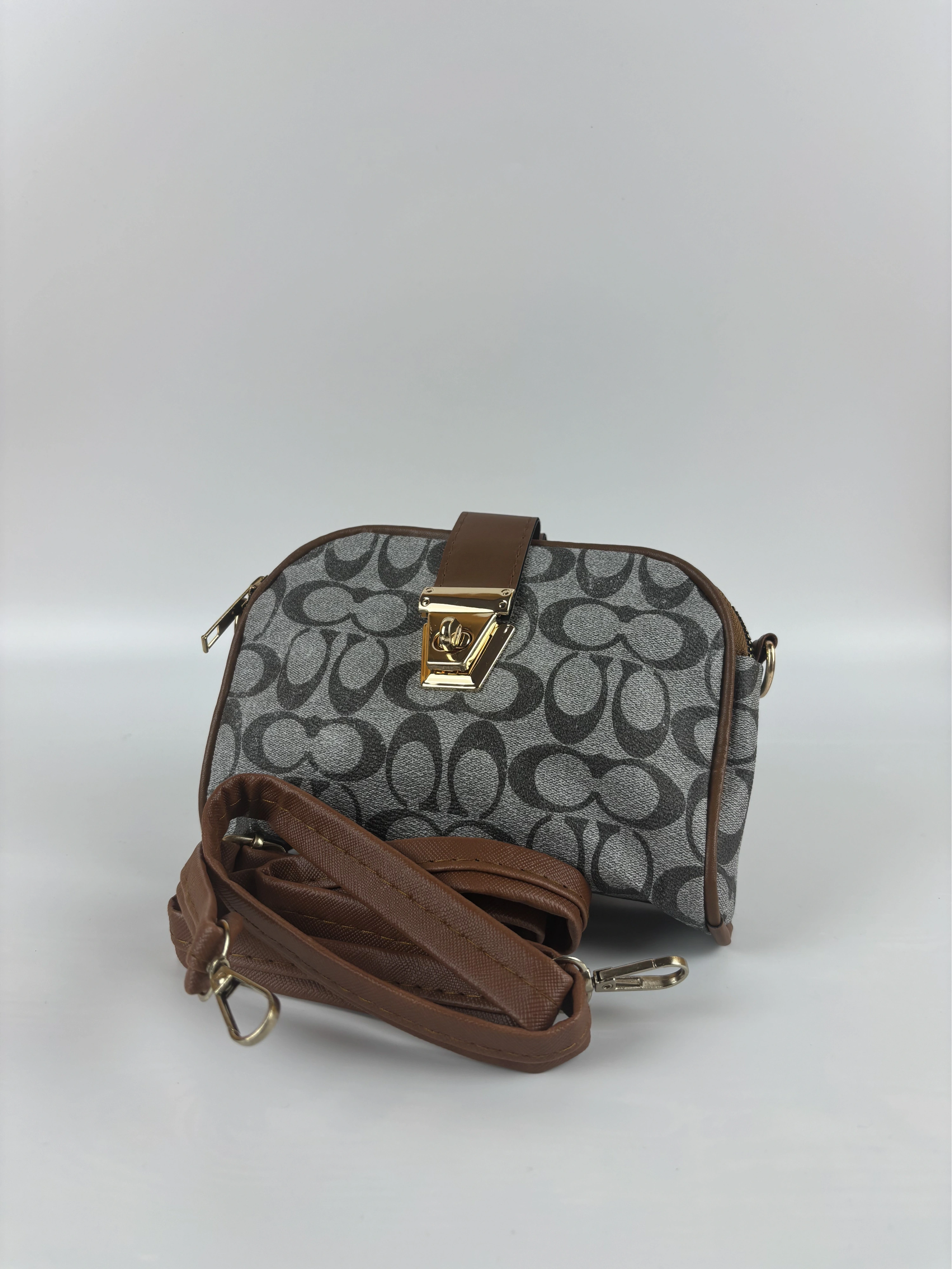 Modern tasarımıyla dikkat çeken Madamia Kahverengi Desenli Mini Çanta, klasik formu çağdaş detaylarla birleştiriyor. Gri tonlarındaki geometrik desenli kumaş yüzey, kahverengi deri detaylar ve gold metal toka ile zarif bir kontrast oluşturur. 18 x 13 x 6 cm ölçülerindeki kompakt yapısı, hem günlük kullanım hem de özel davetler için ideal boyuttadır. Kaliteli suni deri ve dokuma kumaş kombinasyonu, dayanıklılık ve estetik görünümü bir arada sunar. Ayarlanabilir çapraz askı detayı sayesinde ister omuzda ister çapraz şekilde kullanılabilir. Astarlı iç bölmesi ve küçük yan cebiyle eşyalarınızı düzenli şekilde taşımanızı sağlar. Öne Çıkan Özellikler: Malzeme: Suni deri & desenli dokuma kumaş Renk: Gri desenli, kahverengi detaylı Ölçüler: 18 x 13 x 6 cm Kapama: Gold metal tokalı kapak Askı: Ayarlanabilir ve çıkarılabilir çapraz askı İç özellikler: Astarlı ana bölme + küçük yan cep Stil: Günlük / Şık / Klasik Kombin Önerisi: Toprak tonlarındaki elbiseler veya jean kombinleriyle mükemmel bir uyum sağlar. Gold takılarla tamamlandığında zarif bir şehir stili elde edebilirsin.