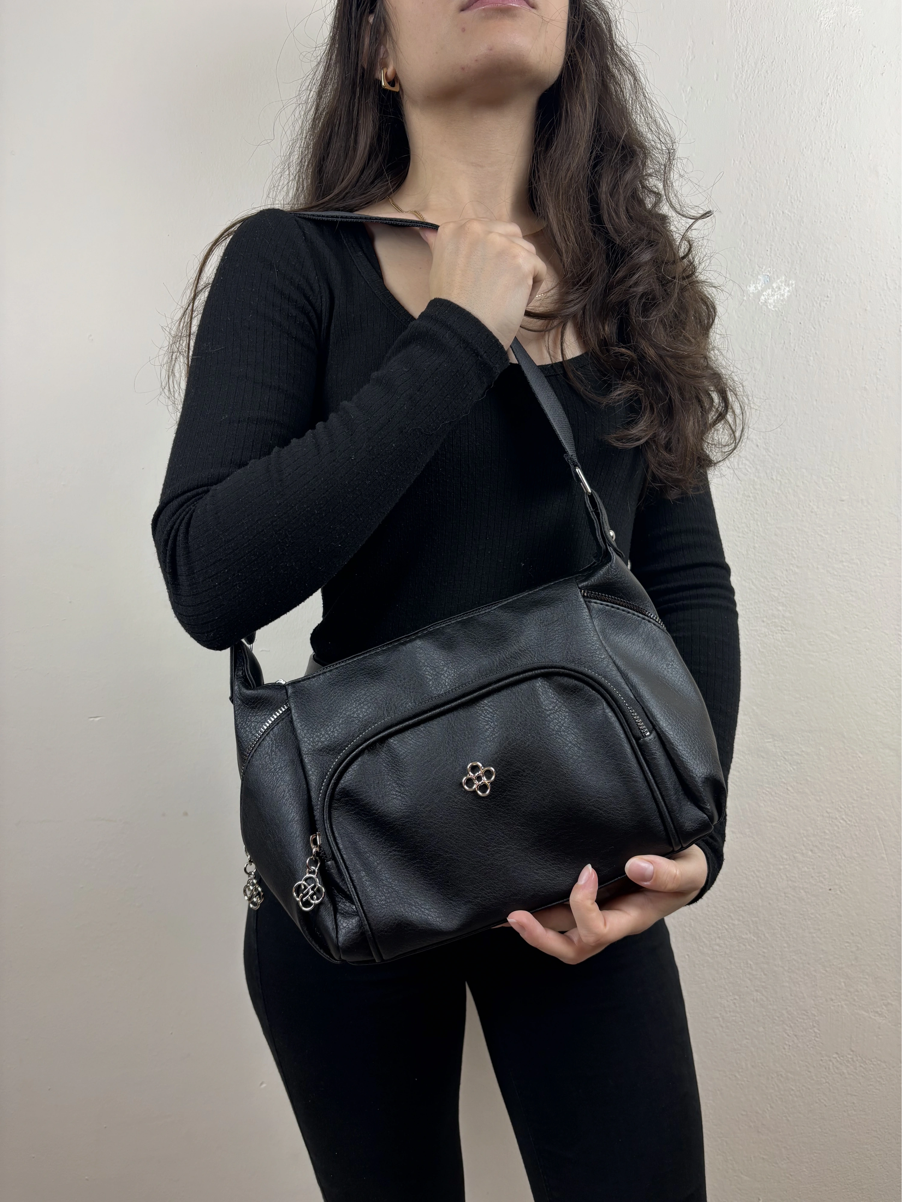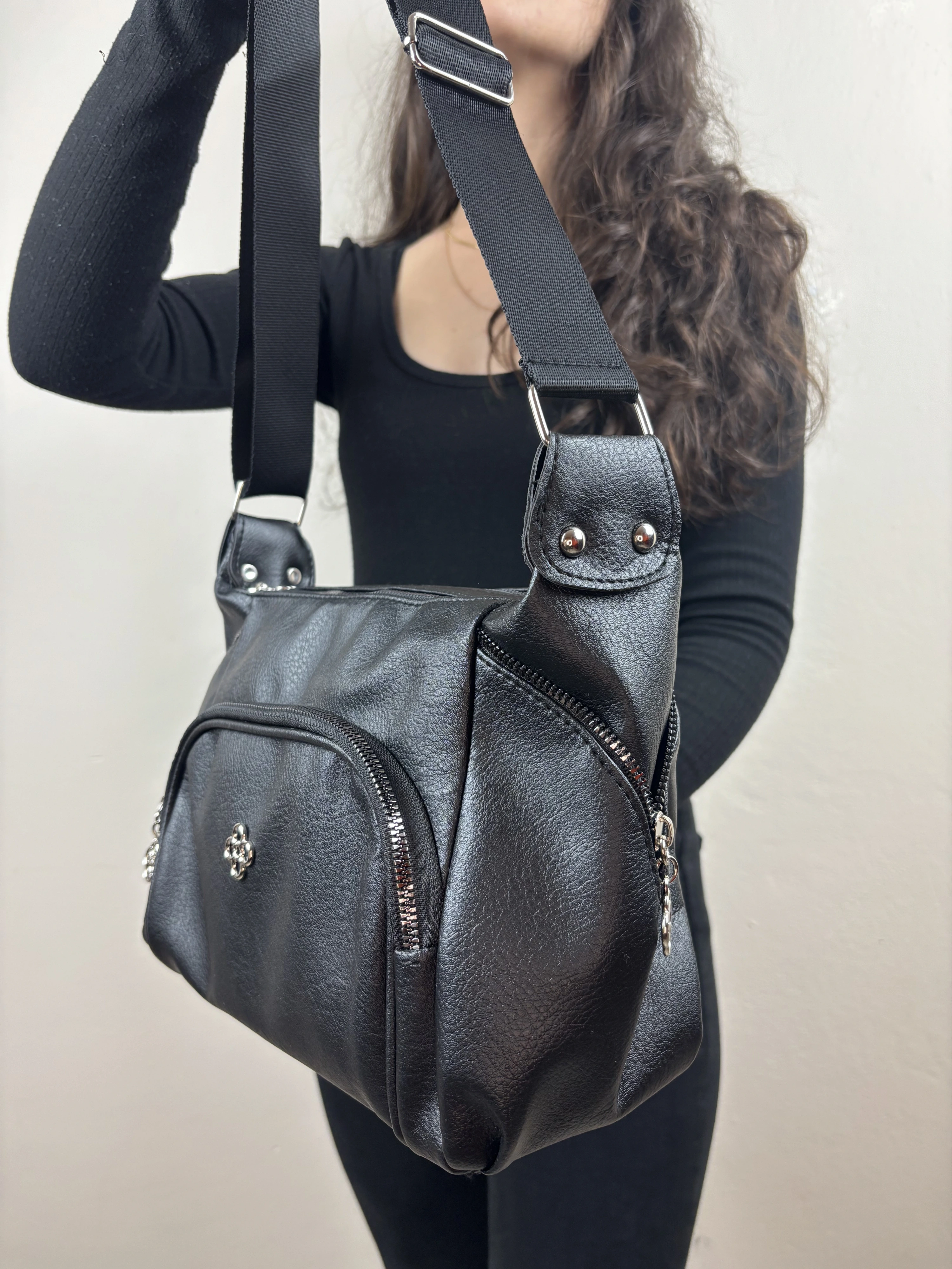 Fonksiyonellik ve zarafeti bir araya getiren Madamia Taupe Çok Gözlü Günlük Çanta, pratik kullanımıyla gün boyu konfor sunar. 35 x 22 x 11 cm ölçülerindeki ideal boyutu, hem günlük ihtiyaçlarını hem kişisel eşyalarını düzenli şekilde taşımanı sağlar. Yumuşak dokulu suni deri materyali, gümüş renk fermuar detayları ve minimal logosuyla modern bir duruş kazandırır. Ön, arka ve yan kısımlardaki çoklu fermuarlı cepler, eşyalarını kolayca erişilebilir şekilde organize etmeni sağlar. Ayarlanabilir geniş omuz askısı sayesinde hem omuzda hem çapraz taşımaya uygundur. Öne Çıkan Özellikler: Malzeme: Kaliteli suni deri Renk: Siyah Ölçüler: 35 x 22 x 11 cm Kapama: Fermuarlı ana bölme Ek detaylar: Ön, arka ve yan fermuarlı cepler İç özellikler: Astarlı geniş iç hacim + iç fermuarlı göz Askı: Ayarlanabilir geniş omuz askısı Stil: Günlük / Casual / Sportif Kombin Önerisi: Bej, krem ve kahve tonlarıyla mükemmel uyum sağlar. Günlük şehir kombinlerinde ya da seyahatlerde sportif bir şıklık sunar. Sneaker’lar ve oversize montlarla tamamlandığında konforlu bir görünüm elde edebilirsin.