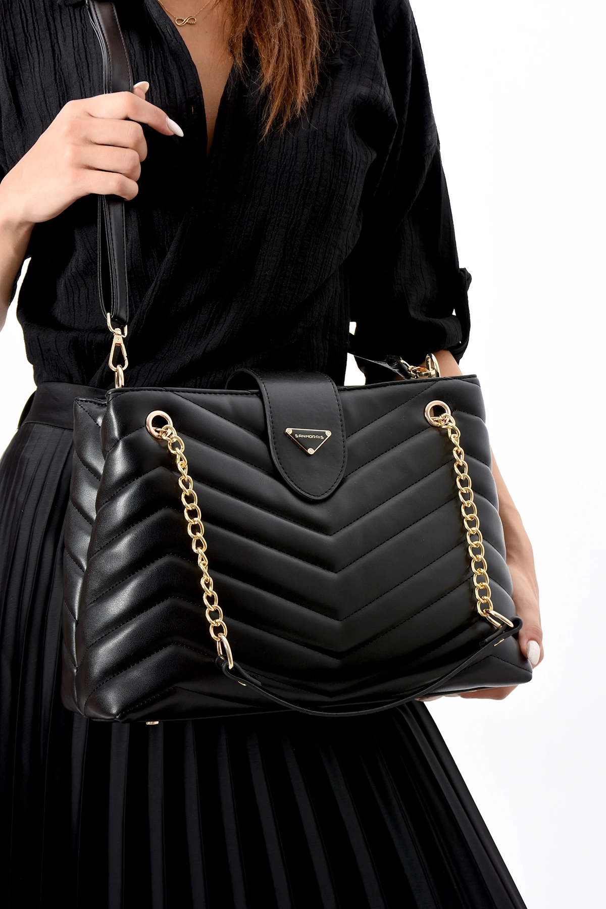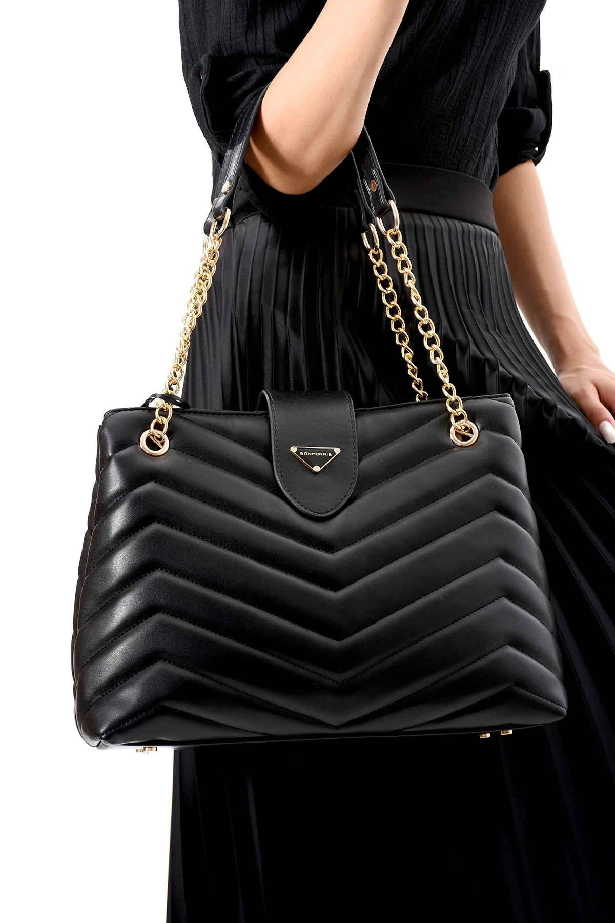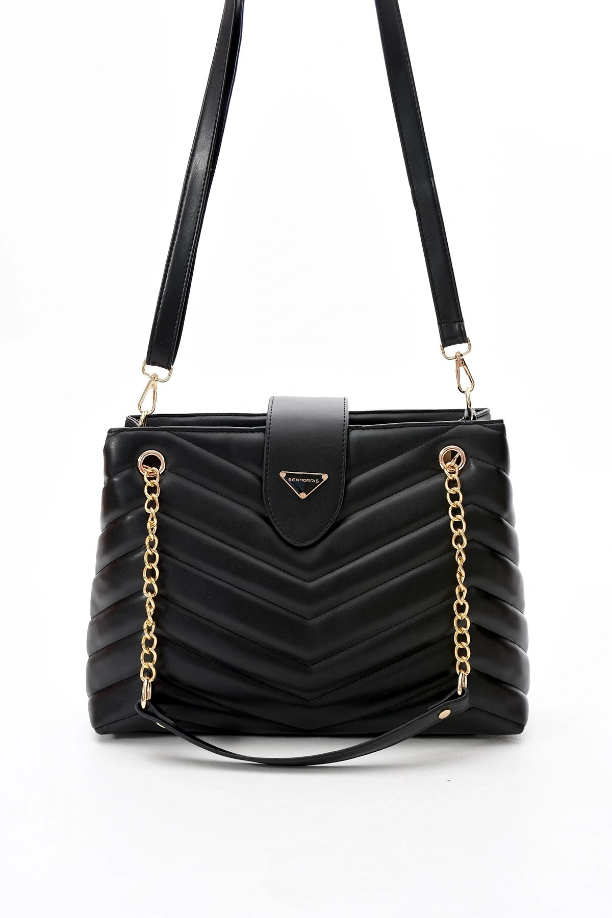 - Zarif tasarımıyla dikkat çeken mat siyah saten kumaştan üretilmiştir, şıklığınızı tamamlar.; - Çok bölmeli yapısı sayesinde günlük eşyalarınız için geniş saklama alanı sunar; telefonunuzdan cüzdanınıza kadar her şey elinizin altında.; - Zincir askısı ile hem rahat taşıma imkanı sağlar hem de stil sahibi görünmenizi destekler.; - Casual ve günlük kullanım için idealdir; işten alışverişe her ortamda yanınızda olur.; - Suni deri malzemesiyle dayanıklılığı artırırken, bütçenize dost bir seçenek oluşturur.; - Her yaş grubuna hitap eden tasarımıyla geniş kullanıcı kitlesine uyumludur.; - Tüm sezon boyunca rahatlıkla tercih edebileceğiniz basic koleksiyonun parçasıdır.; - Dokuma kumaş tipi sayesinde uzun süreli kullanım vaat ederken, dayanıklılığından ödün vermez.; - Makinede yıkanmaya uygun olmayan yapısıyla bakımı kolaydır; elde yıkama tavsiye edilir.