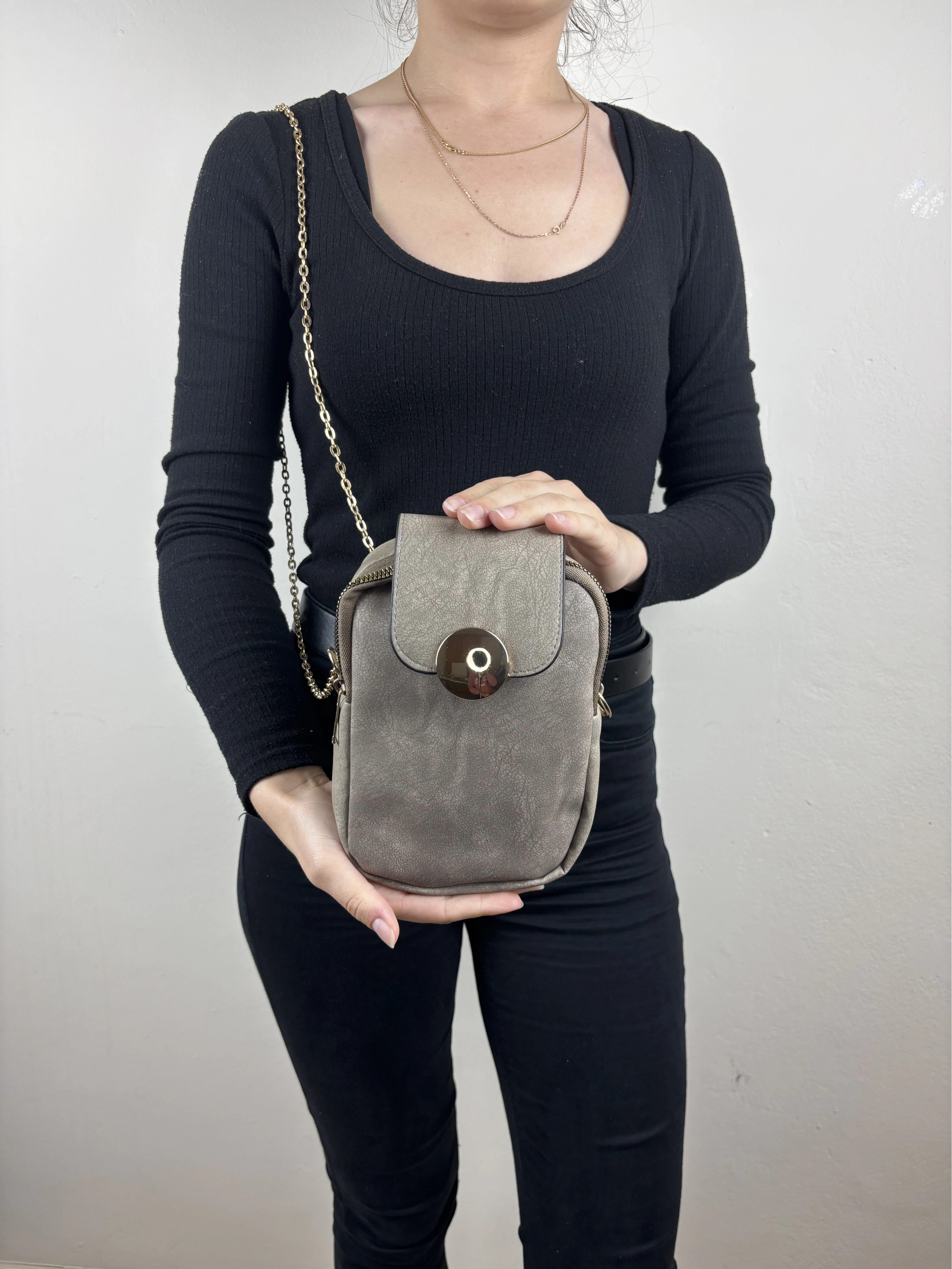 Madamia’nın şıklığı ve minimalizmi bir araya getirdiği Vizon Kadife Mini Zincirli Çanta, kompakt formu ve zarif detaylarıyla her stile uyum sağlar. 15 x 22 x 6 cm ölçülerindeki yapısı, telefon, kartlık ve küçük eşyaları taşıman için idealdir. Yumuşak kadife dokusu, altın renkli zincir askısı ve parlak metal kapak detayıyla modern bir zarafet sunar. Hafif formu sayesinde hem günlük kullanımda hem akşam davetlerinde rahatlıkla tercih edilebilir. Öne Çıkan Özellikler: Malzeme: Kadife dokulu suni kumaş Renk: Vizon Ölçüler: 15 x 22 x 6 cm Kapama: Mıknatıslı kapak Askı: Altın zincir omuz askısı Aksesuar: Parlak metal düğme detayı Stil: Şık / Günlük / Akşam Kombin Önerisi: Geceleri elbiselerle zarif bir tamamlayıcı olarak, gündüz ise jean ve blazer kombinlerinde modern bir dokunuş olarak kullanılabilir. Altın takılarla kombinlendiğinde görünümü mükemmel şekilde tamamlar.