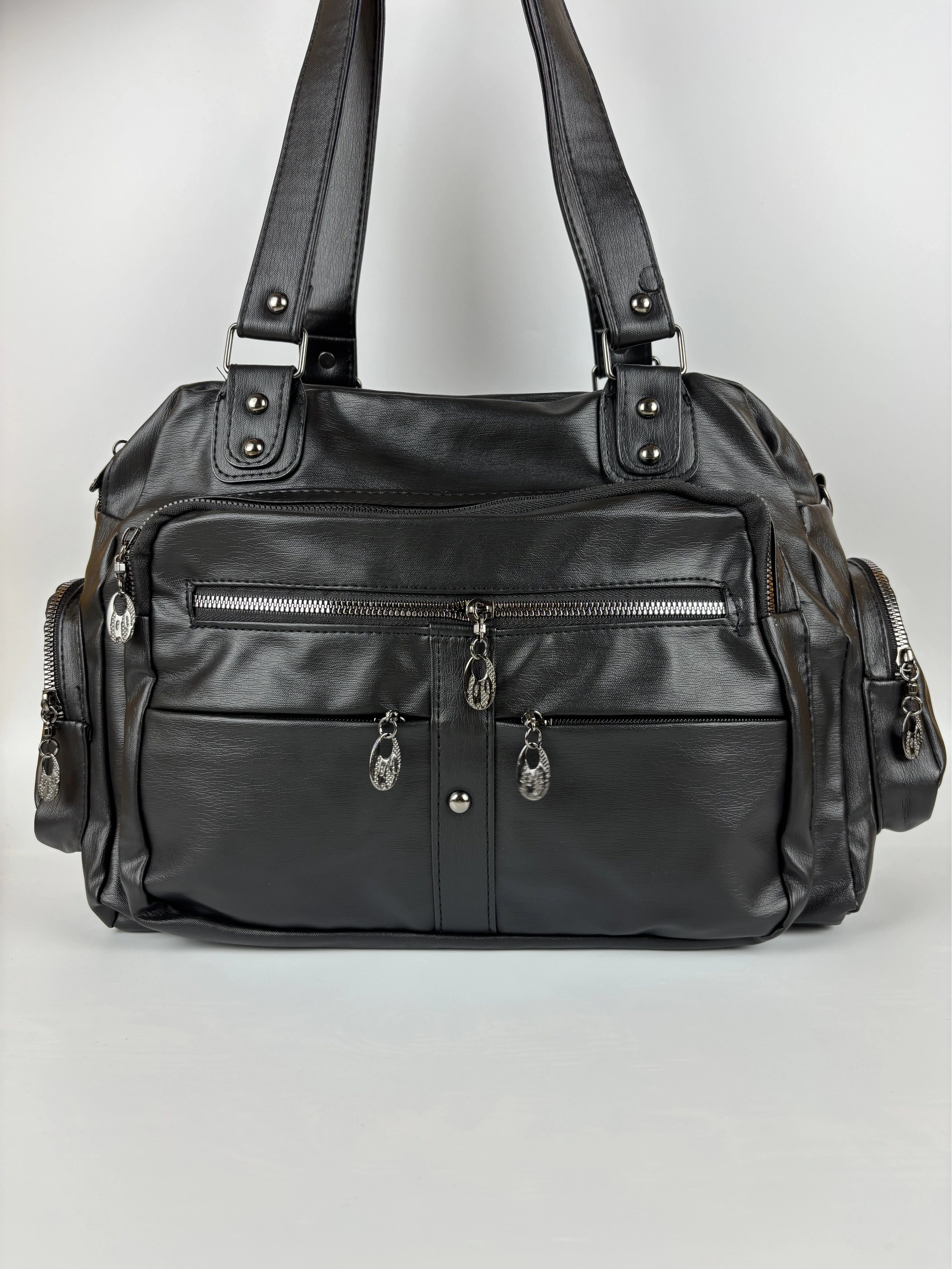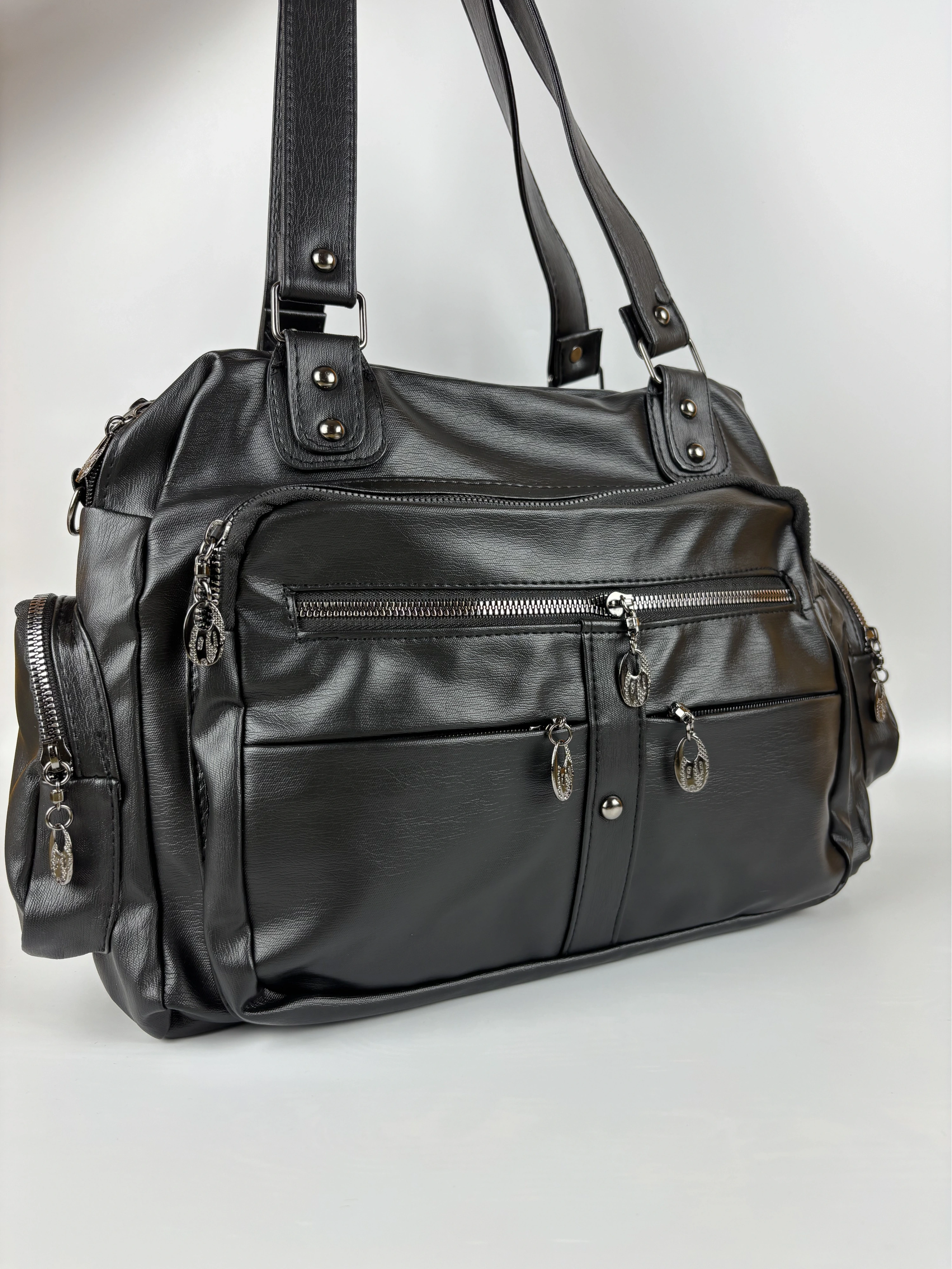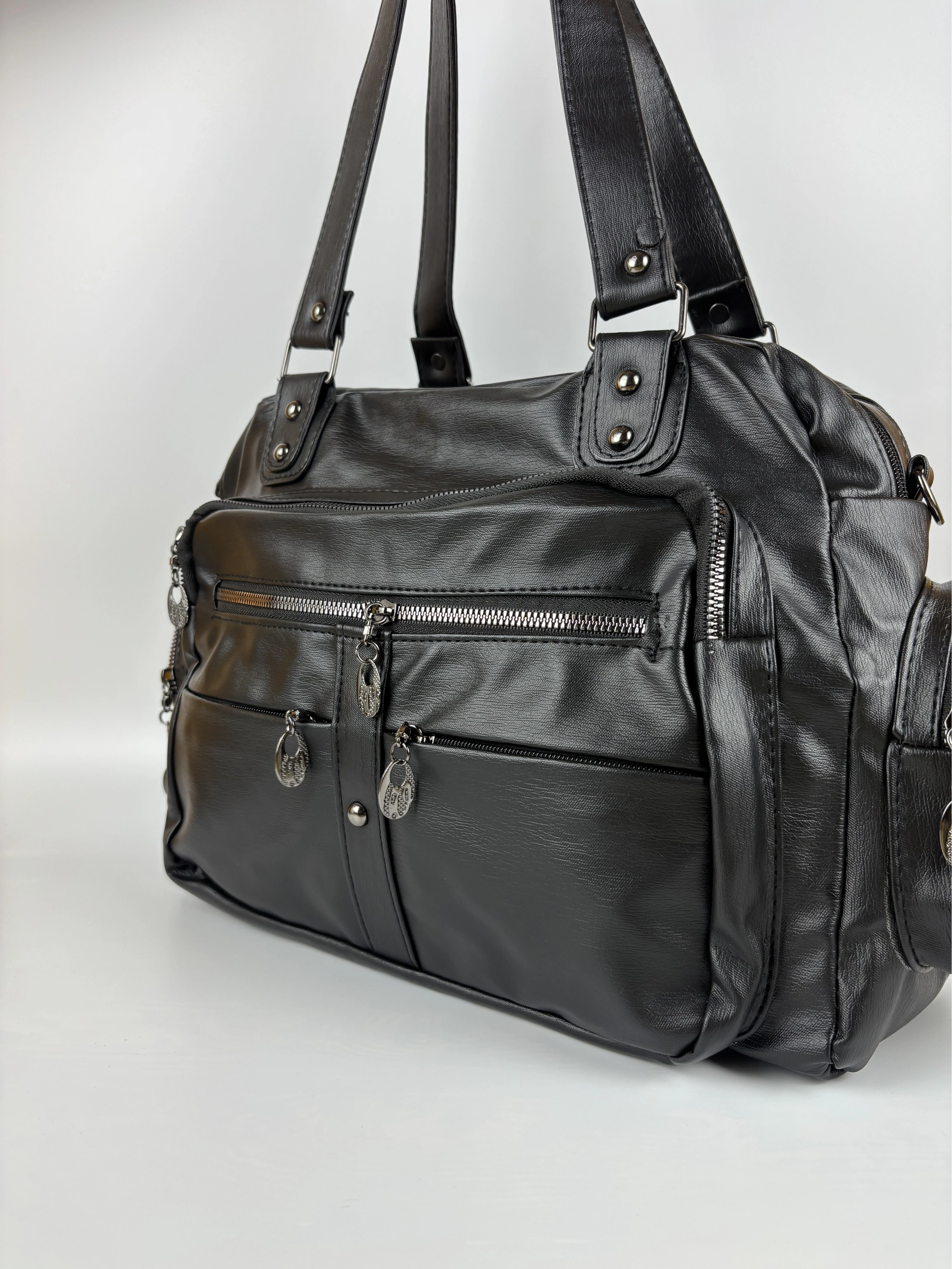 Uzun Açıklama (Ürün Sayfası): Madamia’nın güçlü ve fonksiyonel tasarım anlayışını yansıtan Siyah Çok Bölmeli Büyük Çanta, geniş hacmi ve çok cepli yapısıyla hem şıklık hem pratiklik sunar. 44 x 30 x 14 cm ölçülerindeki yapısı sayesinde günlük kullanımın yanı sıra kısa seyahatlerde de rahatlıkla tercih edilebilir. Kaliteli suni deriden üretilen parlak Siyah yüzeyi, gümüş detaylı fermuarlarla tamamlanarak modern bir görünüm oluşturur. Ön, arka ve yan kısımlarda yer alan çoklu cepler, eşyalarınızı düzenli biçimde saklamanı sağlar. Sağlam çift saplı tasarımı konforlu taşımayı desteklerken, çıkarılabilir omuz askısı kullanım esnekliği sunar. Öne Çıkan Özellikler: Malzeme: Kaliteli suni deri Renk: Siyah Ölçüler: 44 x 30 x 14 cm Kapama: Üst fermuarlı Ek detaylar: Ön, arka ve yan fermuarlı cepler İç özellikler: Astarlı geniş iç hacim + küçük iç cep Askı: Çift elde taşıma sapı + çıkarılabilir omuz askısı Stil: Günlük / Seyahat / Casual Kombin Önerisi: Koyu kahve, bej veya krem tonlarıyla mükemmel uyum yakalar. Seyahatlerde, iş günlerinde veya hafta sonu gezilerinde işlevsel ve zarif bir tamamlayıcıdır.